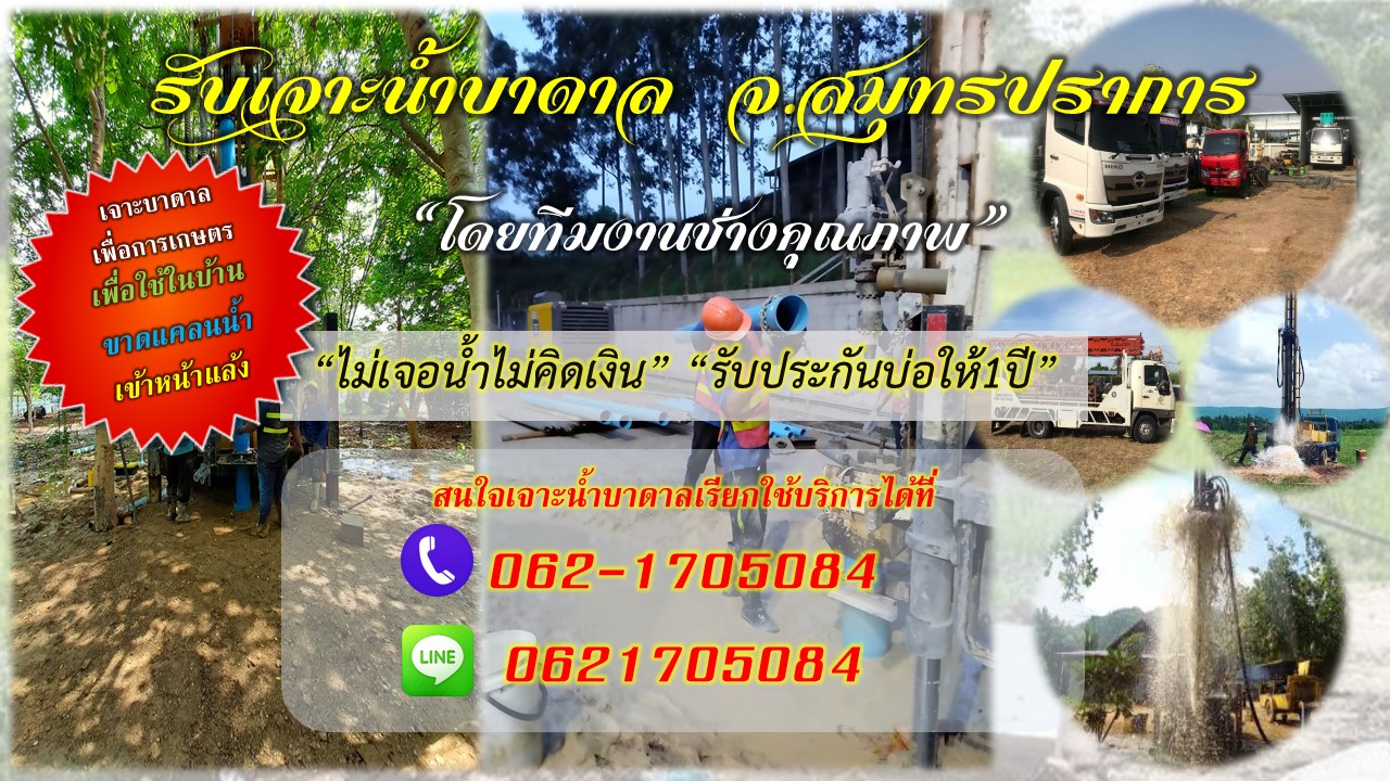 -เจาะน้ําบาดาลสมุทรปราการ โทร/ไลน์ : 062-1705084ช่างเจาะบาดาลเพื่อเกษตร นาข้าว พืชผัก บ้านจัดสรร โรงแรม รีสอร์ท ติดตั้งปั้มต่างๆ เป่าบ่อ ล้างบ่อ ซ่อมแซมบ่อ ราคาเป็นกันเอง